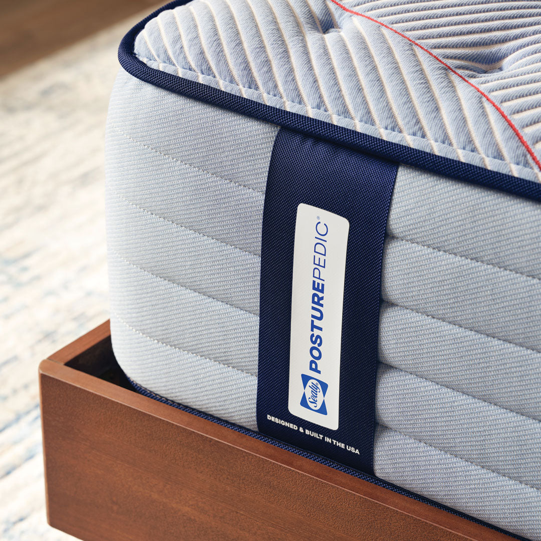 Sealy Posturepedic Satisfied is a traditional innerspring mattress that responds to your every movement and offers an exceptional level of support, thanks to its exclusive Posturepedic Technology. This includes additional lower back support, encased coils, reduced motion transfer, edge-to-edge usability and allergen protect materials.